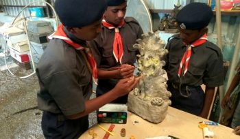 स्काऊट चे विध्यार्थी इकोफ्रेंडली गणेश मूर्ती तयार करत असतांना.